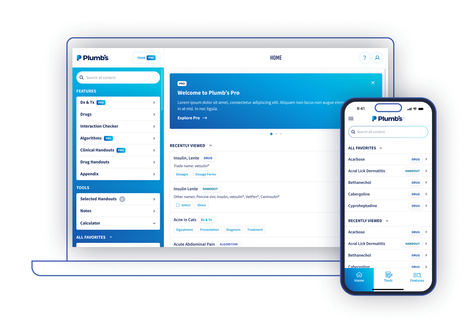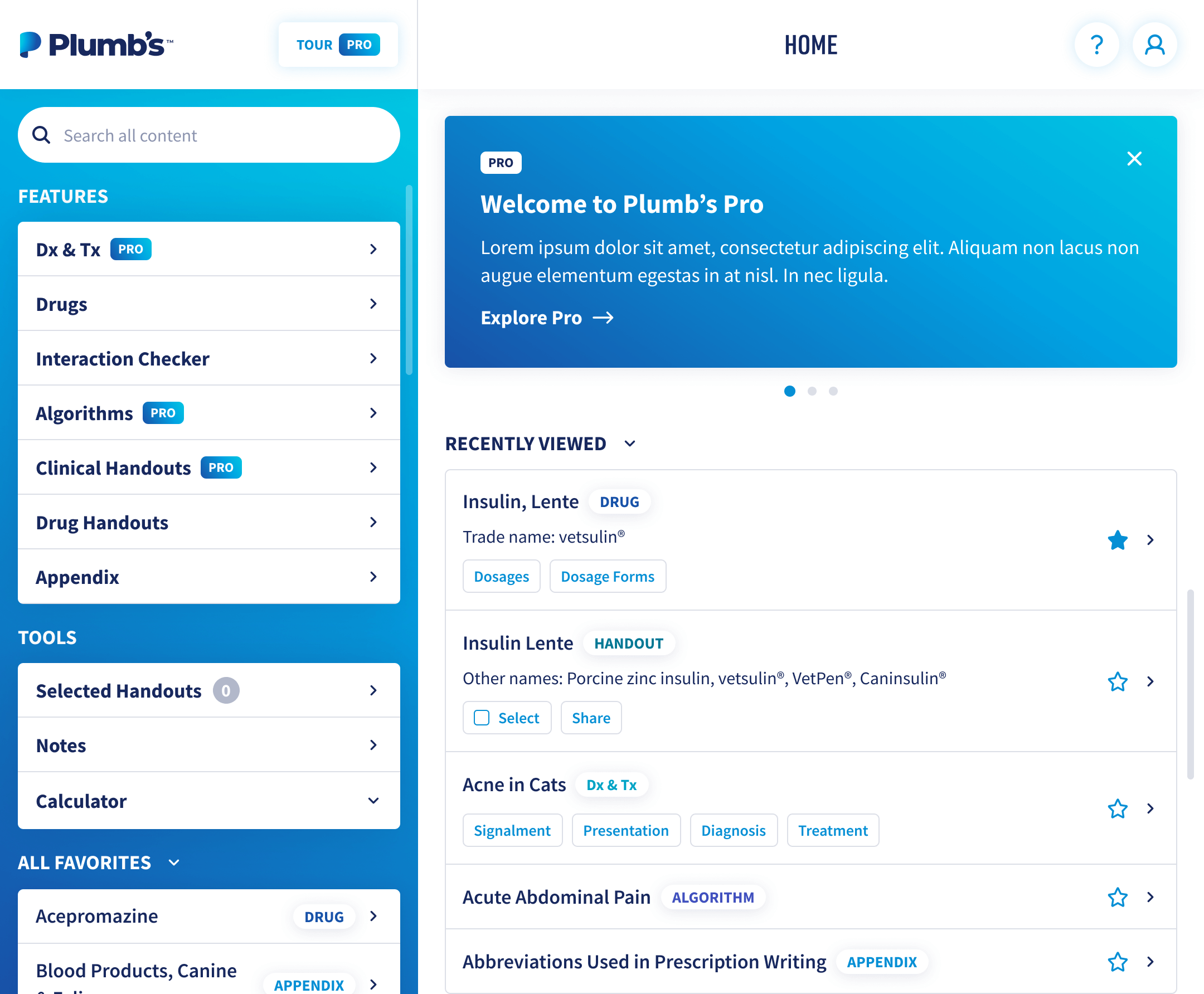 Plumb’s has been the gold-standard veterinary drug formulary for decades. I partnered with another designer to modernize the digital product, addressing major UX issues that had contributed to a 1.9 App Store rating. The work included a new logo and a fully redesigned UX/UI alongside the launch of Plumb’s Pro, resulting in improved searchability, easier content discovery, and a 4.9 App Store rating.